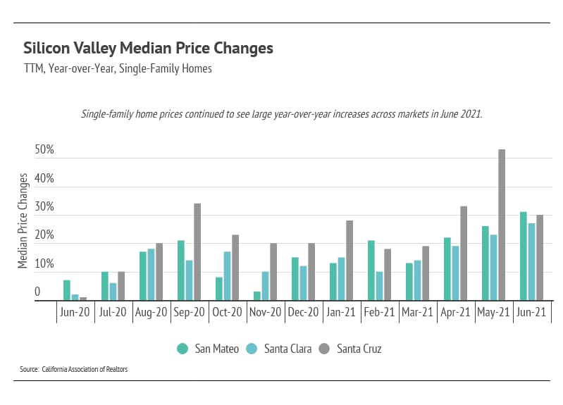 Year-over-year, single-family home prices rose significantly in Silicon Valley.