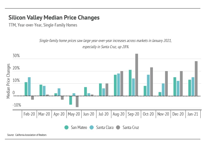 Year-over-year, all counties saw substantial gains, up 13% in San Mateo, 15% in Santa Clara, and 28% in Santa Cruz.