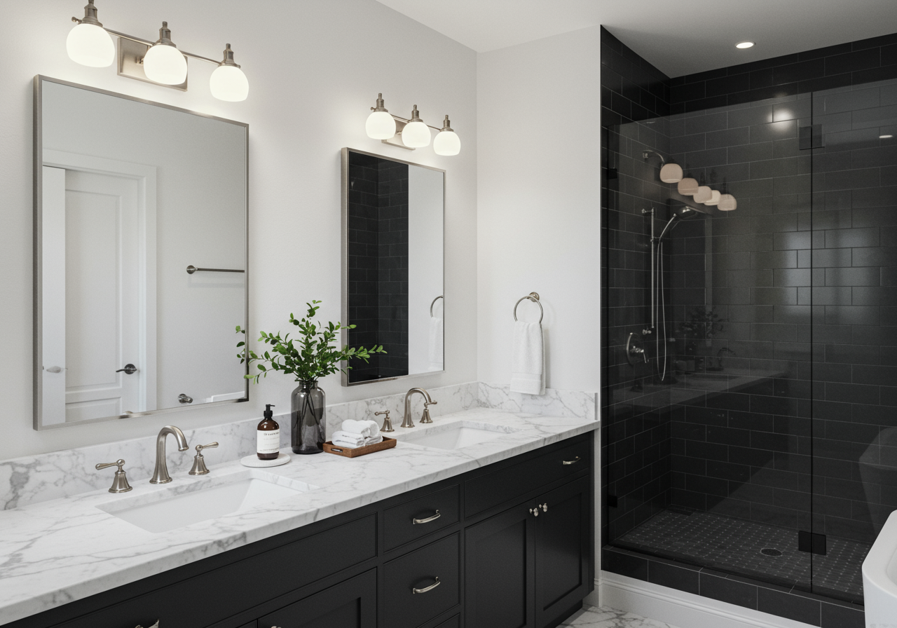 With the approval of our seller and our guidance, we were able to help better position their house to the market by remodeling and moving walls in both bathrooms as well as increase the functionality without pushing the house out or reconfiguring the roof line of the house. Please see the before and after photos.
