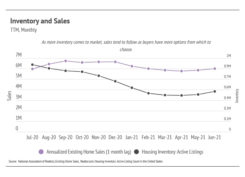 From 2012 through 2019, the seasonality of the housing market was incredibly stable. For seven years, we consistently saw fewer sales in the winter months and higher sales in the spring and summer months. In 2020, however, we saw a shift. The usual seasonality gave way to super-high demand that remained consistent throughout the year, even after the initial pandemic shock from April to June 2020 faded. Then, in winter 2020 and early spring 2021, inventory decreased to historically low levels. Now we are far enough into summer to comfortably see pre-2020 seasonal trends return.